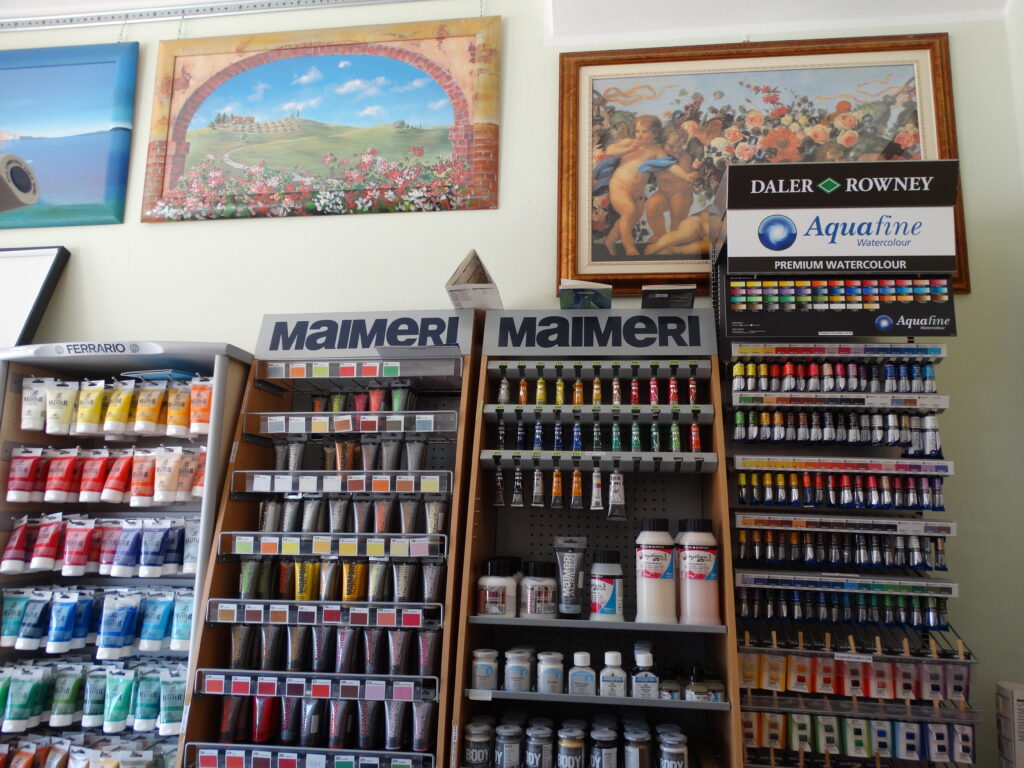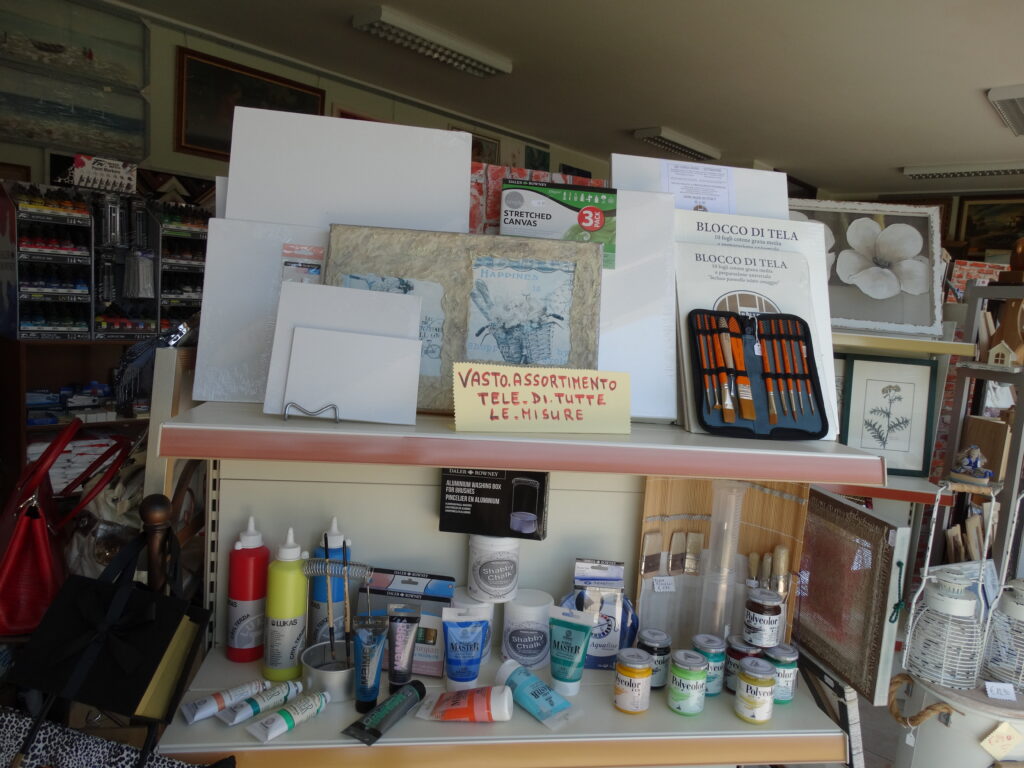 Nel nostro negozio troverai colori acrilici, a olio, tempera e acquerelli, insieme a pennelli di ogni tipo, tele in vari formati (anche su misura), album da disegno, matite colorate e molto altro.