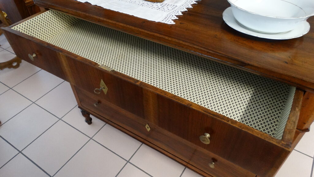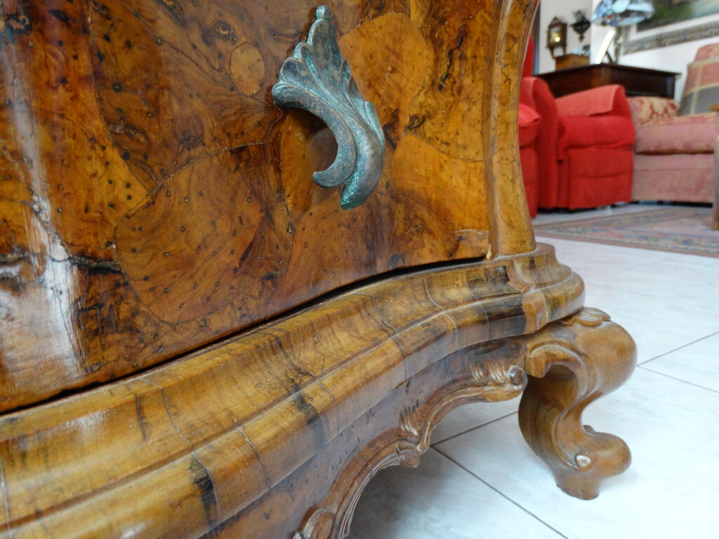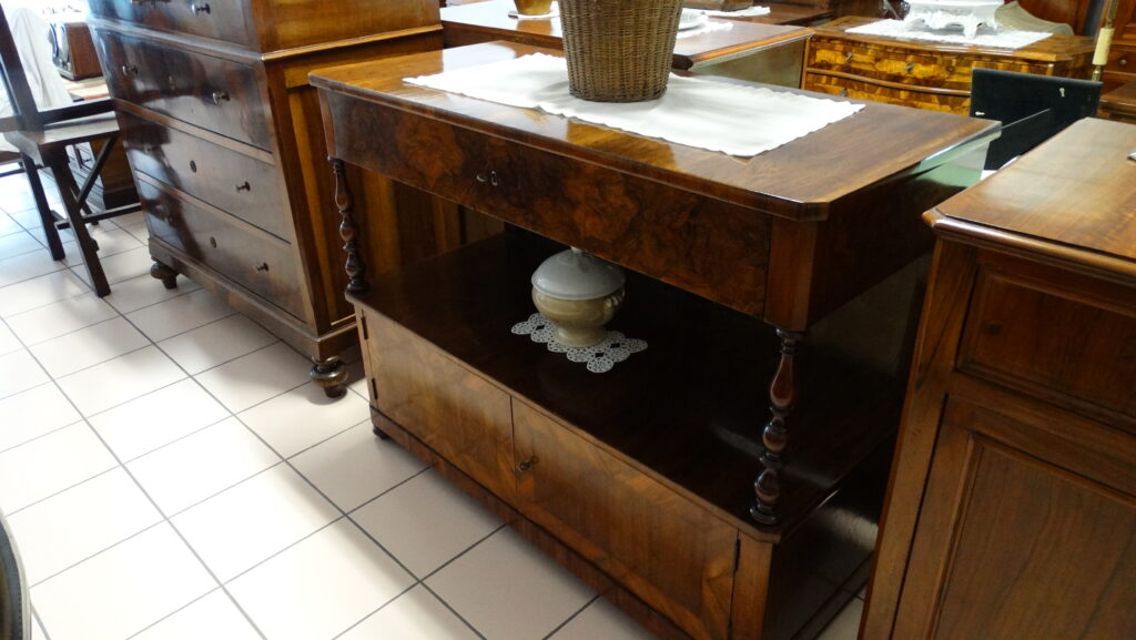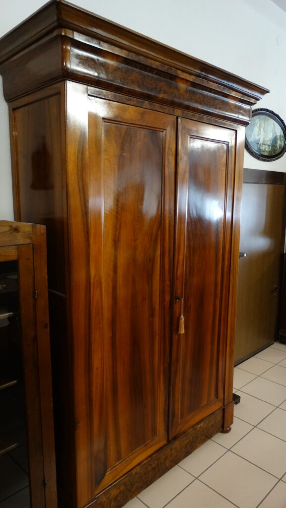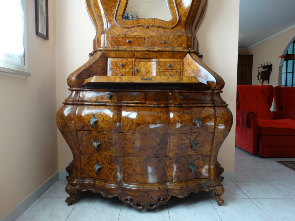La nostra mostra comprende prevalentemente pezzi dagli anni Seicento al Novecento, tutti restaurati artigianalmente con estrema cura e nel rispetto della loro autenticità. Ogni pezzo racconta una storia e rappresenta un’epoca: dai maestosi cassoni seicenteschi in noce intagliata ai comò e scrittoi in mogano dell’Ottocento, fino ai mobili in radica e legni di frutto del primo Novecento. Ogni mobile, oltre a essere un oggetto d’arredo, è un testimone del passato: credenze, vetrine, tavoli, sedie, librerie, console e comodini che riportano in vita il fascino delle dimore storiche.